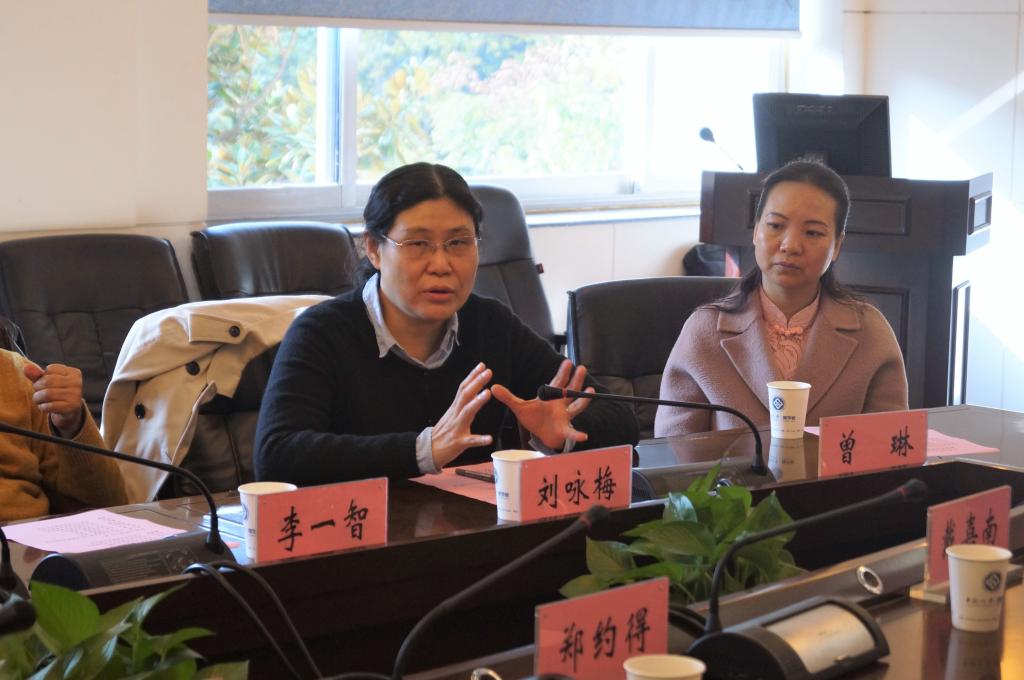 余主任致辞完毕后,刘咏梅副院长发言。她描述了商学院欣欣向荣的近景,充分肯定了台湾校友对学院蓬勃发展的支持与贡献。她也从自身赴台经历中真实体会到了台湾学子的优秀品质,并于回大陆后在学院授课时提出向优秀台湾学子学习的要求。她明确指出两岸间文化之根的本质统一性,并期待台湾校友更多更深地与母校进行学术文化交流。