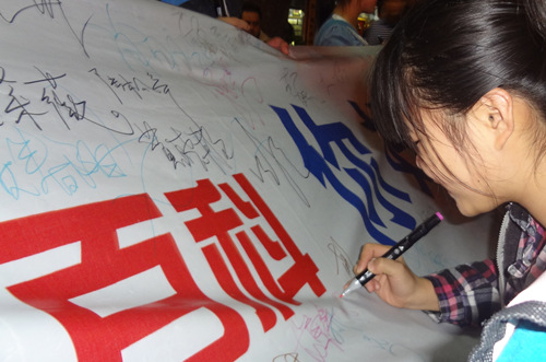 在橘子洲、太平街以及步行街附近,俱乐部成员向过往的行人展示准备好的250个濒危动物的词条。行人们纷纷驻足观看,并好奇地询问各种相关信息,在了解到活动是要宣传保护濒危动物后,行人们表示大力支持并在横幅上留下了签名。